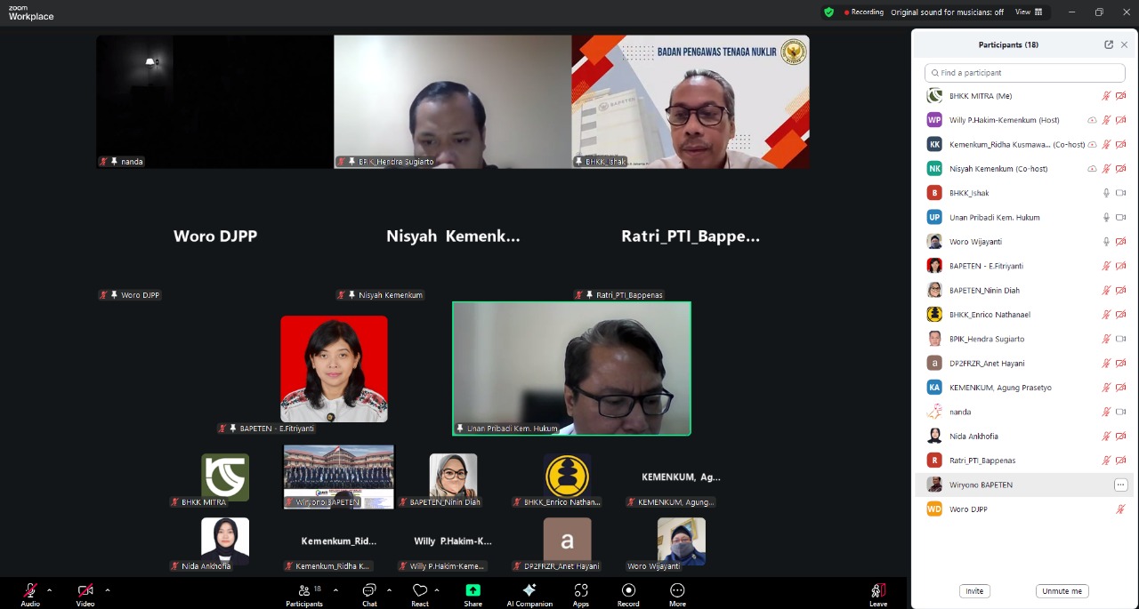 Rapat Harmonisasi Rancangan Peraturan Badan Pengawas Tenaga Nuklir Bidang Kelembagaan